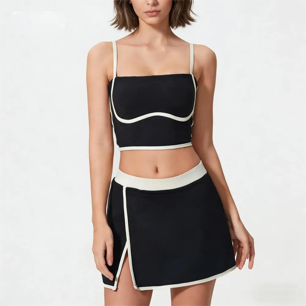 Looking for the perfect women's golf outfit or tennis skirt set? Look no further. Our Color-Block Activewear Set is the ultimate blend of fashion and function. This 2-piece set features a stylish contrast top and a matching flowy skort (skirt with shorts). Ideal for: Tennis & Pickleball Golfing Cheerleading & Dance Summer casual wear Made from premium, non-see-through fabric, this two-piece exercise dress alternative offers the support you need with the style you crave. Upgrade your activewear rotation today.