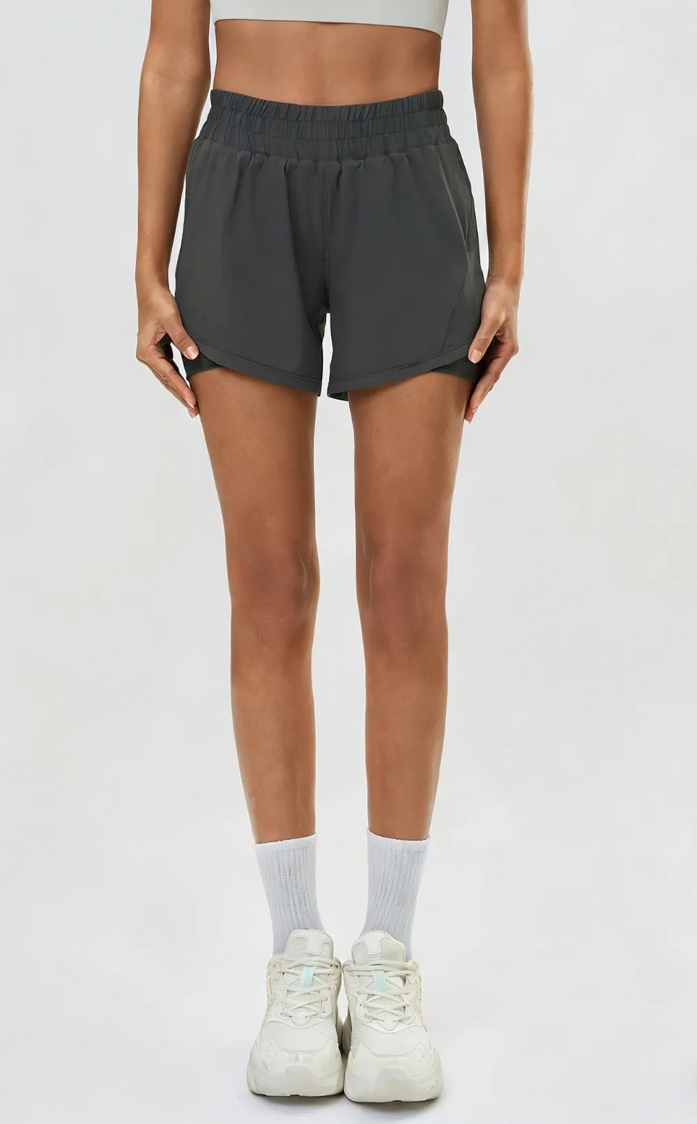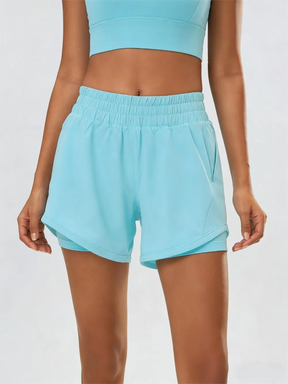 Stop adjusting your waistband and start crushing your miles. Our 2-in-1 High-Waisted Running Shortsare engineered to solve the two biggest complaints runners have: thigh chafing and bouncing phones. Combining a flowy outer layerwith a compressive inner liner, this duo is your new PR (Personal Record) partner.