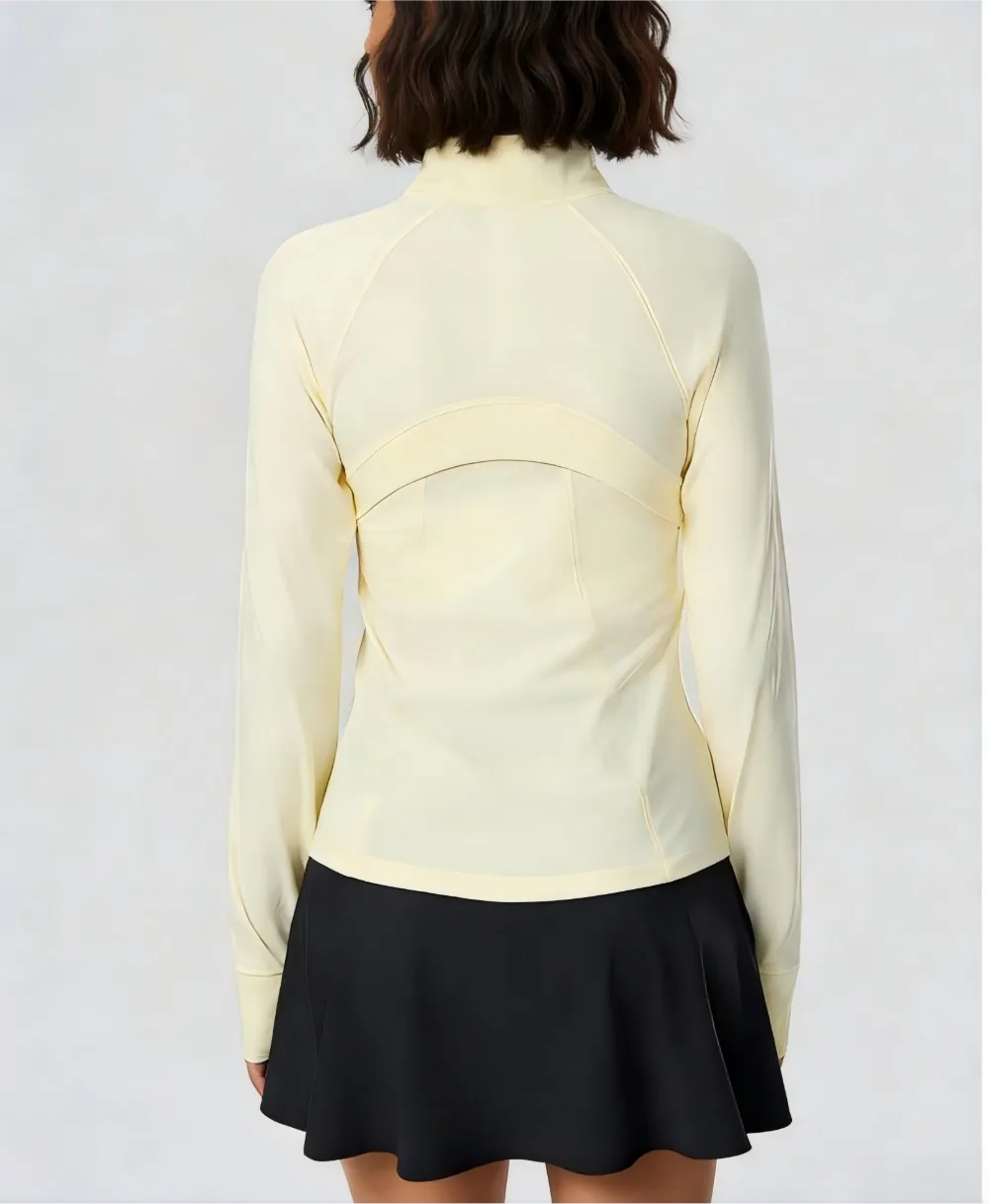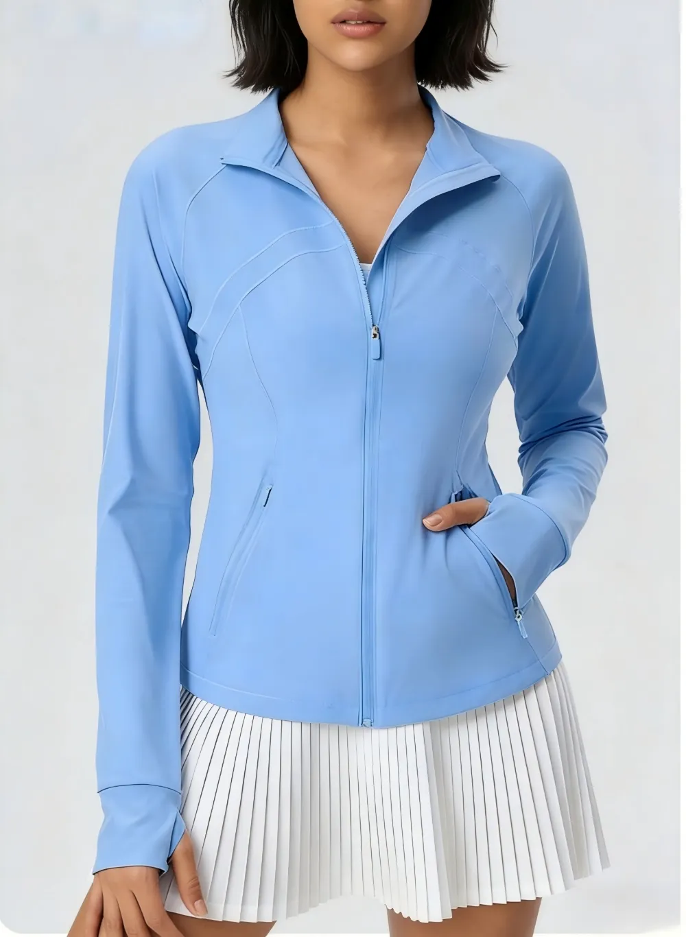 Smooth Glide Full-Zip Entry:Equipped with a premium, snag-free zipper, this jacket allows for adjustable ventilation. Zip it up for maximum coverage, or leave it halfway for a chic, breathable V-neck look.