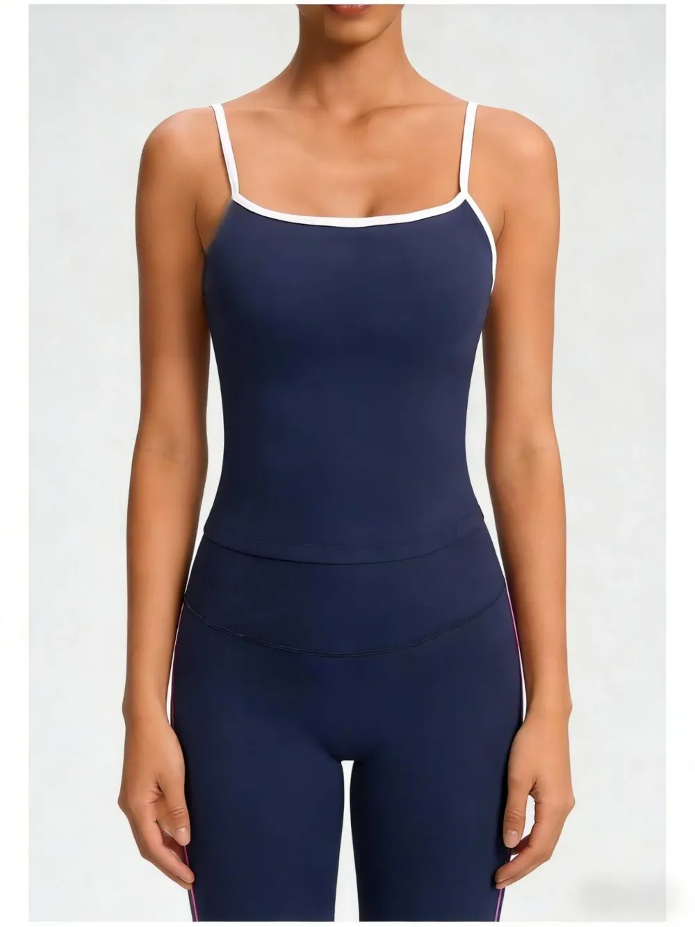 Channel your inner 90s aesthetic with our Retro Contrast Cami. Featuring chic white piping details and delicate spaghetti straps, this top brings a touch of nostalgia to your activewear rotation. It’s not just a workout top; it’s a fashion statement.