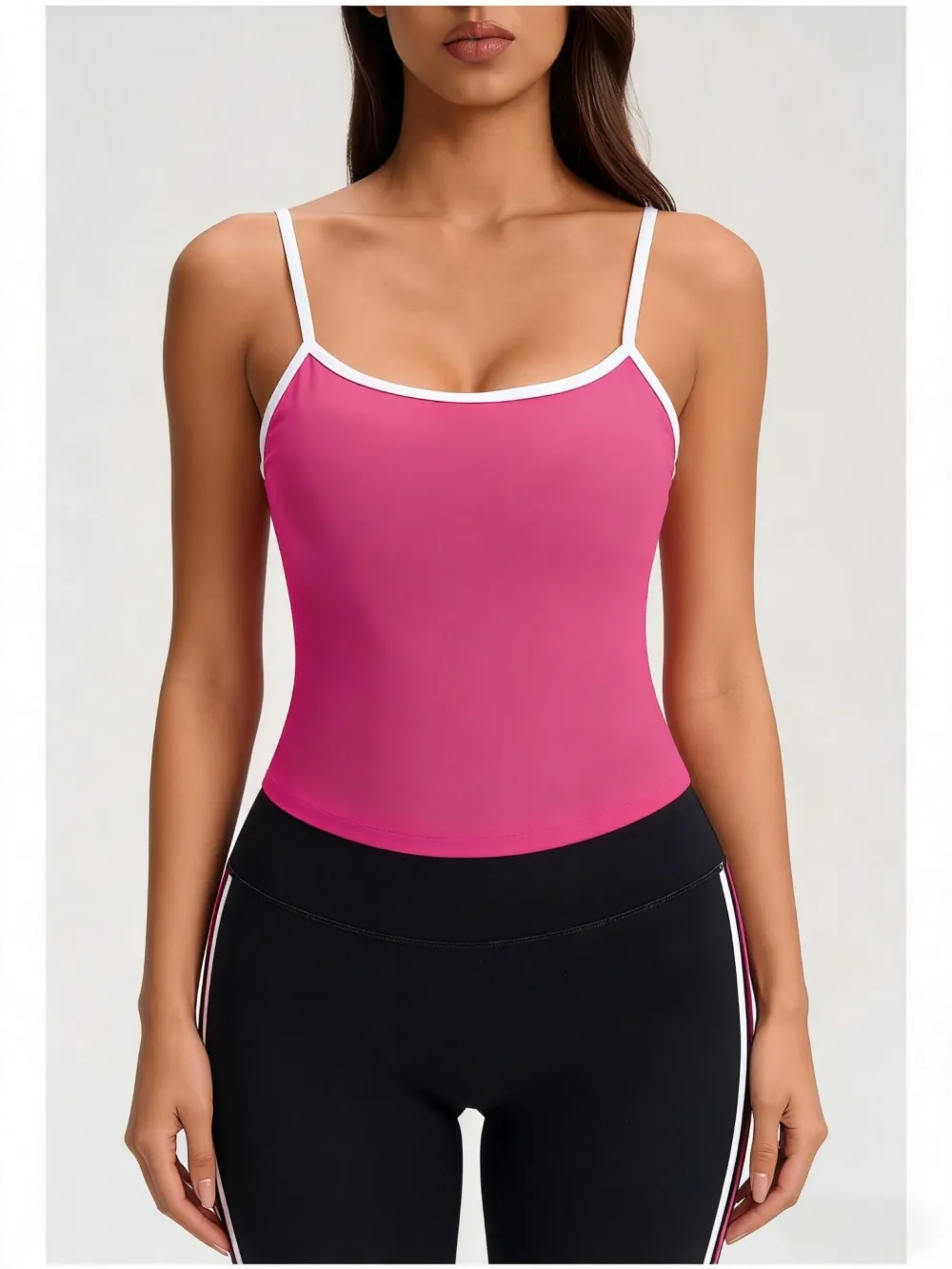 Whether you are layering it under a zip-up hoodie or wearing it solo, this contrast binding yoga tankis breathable and moisture-wicking, keeping you dry and confident.
