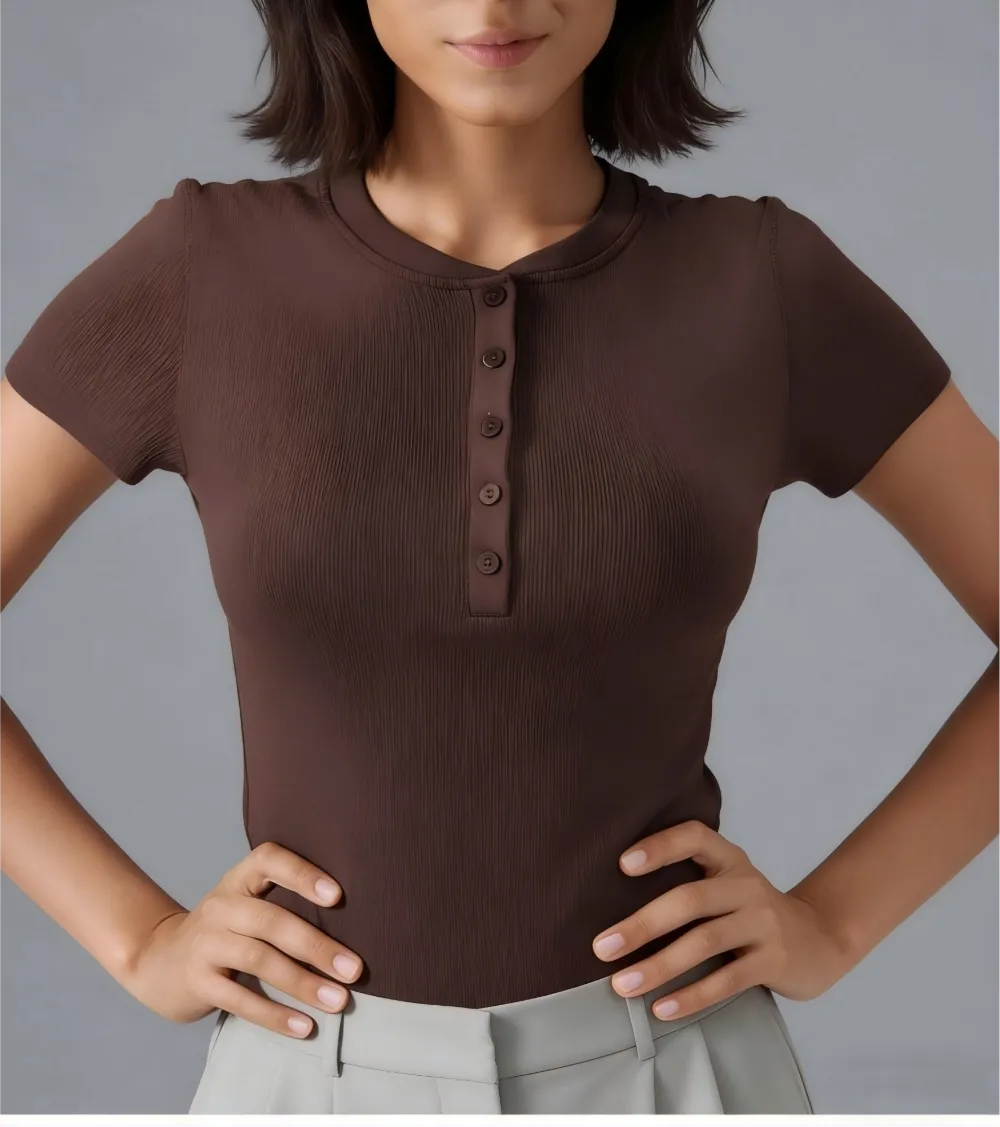SculptSoft V-Notch Ribbed Short Sleeve with Built-in Bra