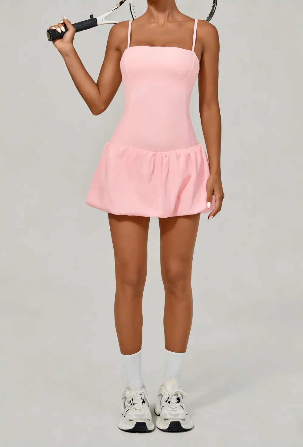 Step onto the court with a fresh, feminine edge in our Spaghetti Strap Bubble Hem Tennis Dress. This isn't just your average 2-in-1 exercise dress; it’s a fashion-forward piece that blends the dreamy Balletcore aesthetic with the rugged demands of professional sports. Featuring delicate adjustable straps and a voluminous bubble hemline, this sleeveless athletic dress is designed to make you feel as light as air while you dominate the pickleball or tennis court.